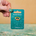 On a card backing. Enamel pin is approx. 3.5 x 2 cm.